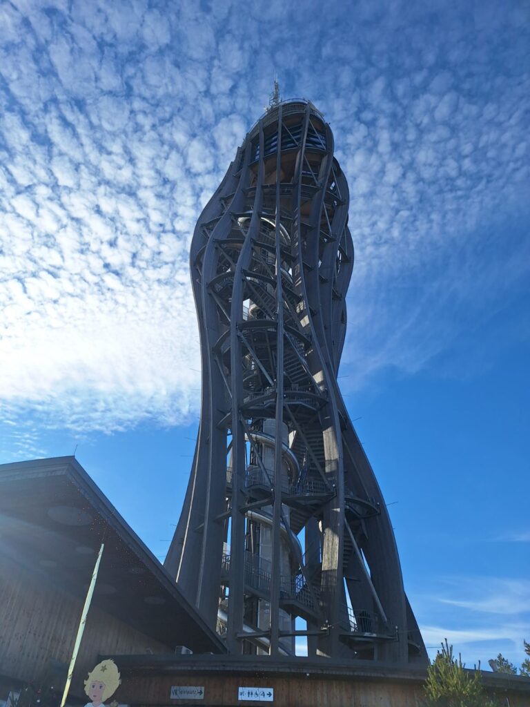 Nakon ulaska u Austriju, učenici su najprije posjetili vidikovac na planini Pyramidenkogel. Toranj je visok 100 metara. Za lijepoga vremena s vrha tornja pruža se veličanstven pogled na Korušku, jezero Worthsee te okolicu, no magla nam je mrvicu pokvarila doživljaj.